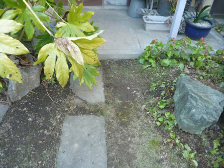 今年も残すところ僅かになりました。落ち葉の吹き溜まりとなります玄関前を掃除します。