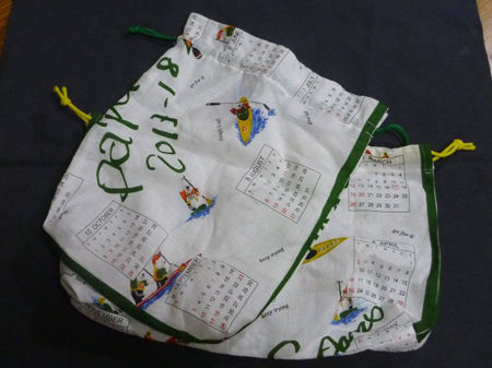 パパスショップでいただきました布製暦をご近所さんで巾着袋に加工していただきました。