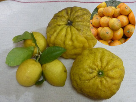 自宅の庭で育ちましたレモンと鬼柚を戴きました。