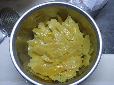 香りと色味を抽出された果皮は脱色されパリパリでした。