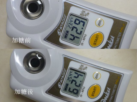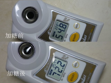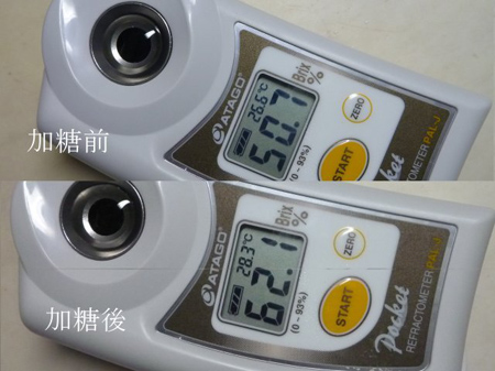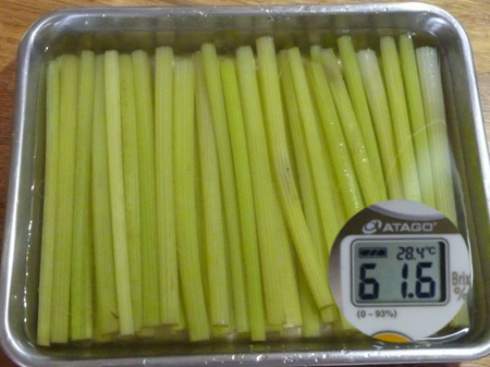 蕗から水分が出るのか?蕗が糖分を取り込んだのか?糖度が下がりました。