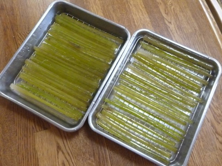 乾燥2日目、粉砂糖を塗して蕗のアンジェリカの完成です。