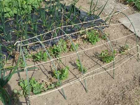一月振りに出掛けた埼玉菜園。玉葱の畝間に蒔きました小松菜・蕪が育ちすぎ。