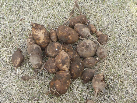 種芋を蕎麦友より分けて戴き、放置しておりましたのを収穫してみました。