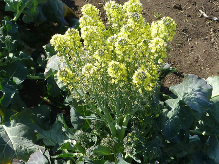 2月15日現在、東京の自宅の開花が見られない梅。寒いと思われていた相模原市では開花していました。隣の家庭菜園ではブロッコリーに花が咲いています。