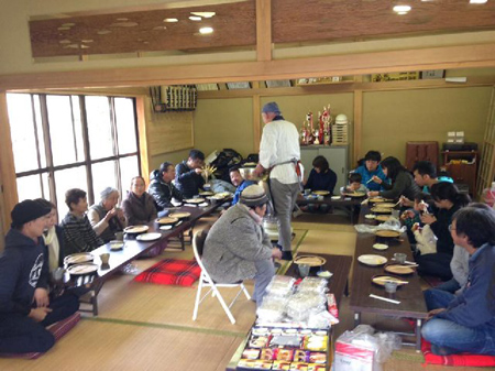 自治会館へは多くの住民においで頂き、始めて味わう青根産の蕎麦を喜んで戴きました。 住民の中には蕎麦切り体験の申し出もあり、青根産蕎麦粉で蕎麦団子を作りたいと所望した良しと訊きました。又お世話になっております根小屋ファームの石井さんも大変喜んで戴けたようです。限界集落の中で何かお役に立てないかと蕎麦作りを手伝い、住民に食して戴き、喜んで戴けたのは私どもとしても喜びであり、良き仲に感謝です。