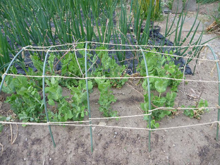 野鳥の食害に遭い心配しましたキヌサヤが草丈を伸ばし始めました。