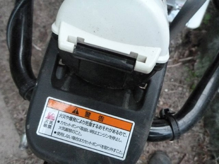今年最初の耕耘ですので後ろに取り付ける抵抗棒を一番深く耕耘する位置に取り付けました。深く耕すから前進が遅いですね。爪径が25cmですから同じ深さを耕したものと思います。深く耕すため前進が遅い分燃料を使うのですね。今までの最長運転記録で1時間30分になりGボンベを二缶も消費してしまいました。