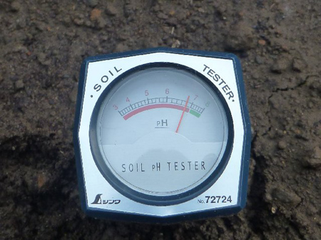 耕耘後土壌酸度計で計測しました。値は6.8です。作物に寄りますが理想は6.5です。