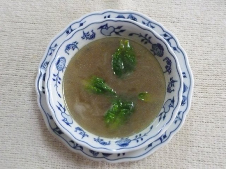 水1000ccにコンソメキューブ3を溶き、裏漉しした根を加え塩で味を調えます。味見すると、砂糖を加えたかしら?と思うほどの甘さです。