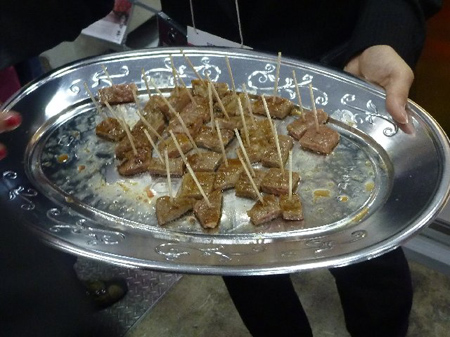 蕎麦打ち仲間よりの情報により事前登録して入場料4,000円の節約。イベントは6件で関係者の受付で混雑していますから、比較的空いている奥の受付で済ませ、一般人もちらほら見かけました。入場するといきなり宮崎牛の試食。銘柄牛は美味しいですね。