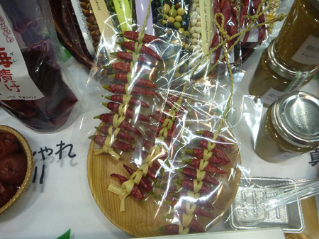 環境王国山形県真室川市のブースで真っ赤な唐辛子が目にとまりました。 自家栽培していますが乾燥させている間に色が褪せてしまうのが悩みでした。 悩みを打ち明けるとP(リン)K(カリ)の不足では、珪藻土を漉き込むのも良いと教示戴きました。イベントで悩みを打ち明け、解決する糸口を教わるのが嬉しいです。