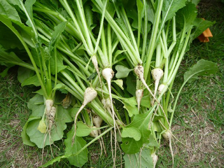 蕪の間引きを致しお隣さんへ貰って戴きました。