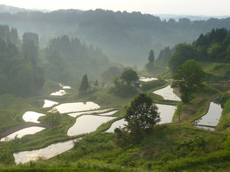 陽の出前に起きるところが、目が覚めず明るくなってしまいましたね。宿から程なくの菅刈の棚田は静寂に包まれておりました。