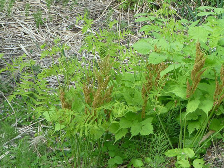 秋田出身の蕎麦友からゼンマイを教わりました。茶色く見えるのが雄株で食用には向かないと言います。既に葉を広げてしまったのが美味しく食用に向く雌株です。