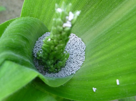 前週、顔を出し始めた雄花に大害虫アワノメイガ対策の薬剤を散布しておきました。