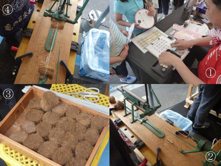 画像右上から時計回りに進みます。①子供達もMy束子作りが楽しみのようですね。