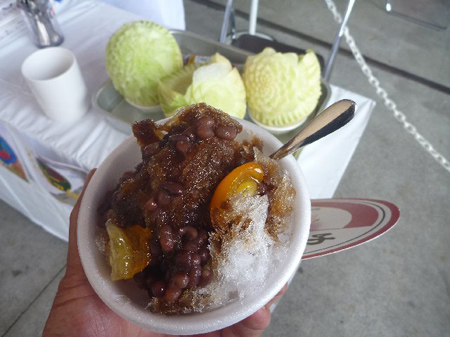 保健所へ臨時出店届済を済ませた服部栄養専門学校スペシャル黒糖小豆かき氷を楽しむ。
