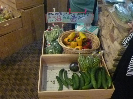 当間高原リゾートホテルベルナティオの野菜直売所に寄ってみました。小茄子と胡瓜が一つ10円也。国産パプリカは100円と破壊的お値段です。