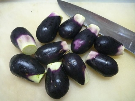 ベルナティオで求めた小茄子を洗いヘタ取り致します。