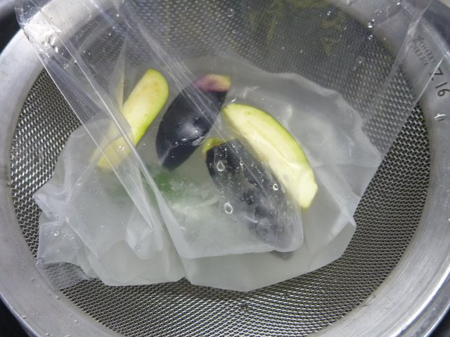全体が漬け汁に浸かるようにし、空気は出来るだけ追い出し、冷蔵庫で浸かるのを待ちます。