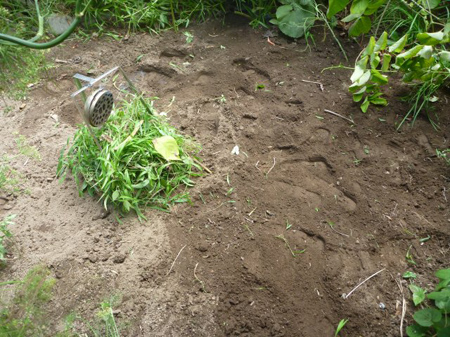 トウモロコシを片付けた場所はアレヨアレヨと雑草に覆われてしまいましたので片付けます。