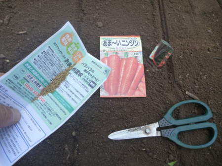 種苗店で種を求め筋蒔きしますが、種は細かく蒔き過ぎが常です。