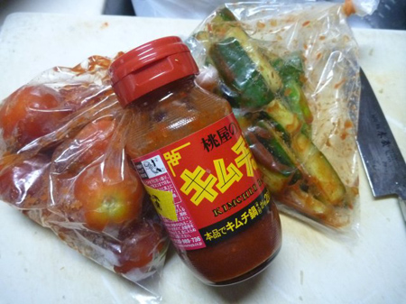 早稲田蕎麦友十日町農園お手伝いの際に桃屋とは知らずに求めたキムチの素。当然自宅近くのお店にもありました。持ち帰りました胡瓜・トマトを俄キムチといたしました。