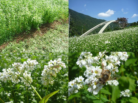 播種してから40日、満開間近の青根原蕎麦畑。蜜蜂が飛び交い受粉を助けます。