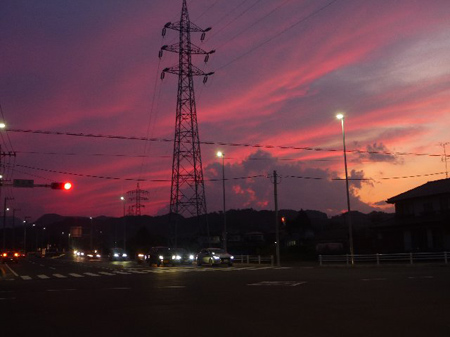 大型の18号台風は九州沖。不気味に焼けた空が2~3日後の被害を知らせているのでしょうか?