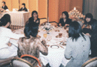 また、シャッターチャンスとしては花嫁が「ホッ」とした瞬間、例えば納会後の花嫁と友人との交歓があります。また各テーブルも全体をおさえた後、2〜3人ずつのグループで撮影しておくと、新郎新婦にとっては「あー、この人も来てくれたのだ」と、写真を見て喜ばれるでしょう。