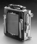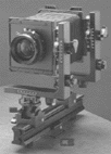 レンズ・シャッターを取り付ける前板と、ピントグラス、感光材料を着脱する面を1本または2本のレール上で前後させられる構造になっており、最大の特長は、前板、後部枠を自由にアオルことができる。
