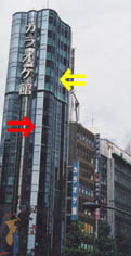 作例の建物の写真を比較して見てください。左側はPLフィルターを使用していませんから、全面的に反射が写り込んでいます。