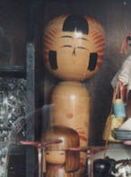 サイドボードに入っている「こけし」を撮った写真は、ファインダー内でもっとも暗くなって、効果のあった状態で撮影したもので、無反射の状態です。そのもっとも効果があったままで、角度を変えた写真はカーテンが写り込んでしまっています。角度によってまったく効果がない写真例です。
