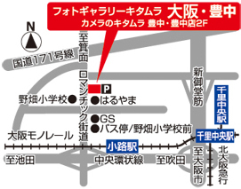 フォトギャラリーキタムラ大阪・豊中は、カメラのキタムラ豊中店・こども写真館スタジオマリオ豊中店の2 階に位置しています。アマチュ写真家からプロ写真家まで、幅広いお客様の作品発表の場として人気のフォトギャラリーです。