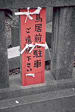 『おみくじつき』駐車禁止の看板におみくじが付いている。赤色というところがいかにも鳥居らしい。埼玉県の行田にて。ボク自身は「路上観察」で採集した物件写真を、自分のコレクションとして楽しむというよりは、人に見てもらうことで、いっしょに現場に居合わせたかのように、面白さを分かち合いたいと思ってます。『路上観察学会』の会合でも、自分が面白いと思ったモノを、みんなも面白がってくれたりとか、他の人が面白いと思って撮ってきたモノを、自分も見せてもらうといったことが好きですね。例えば釣り好きな人が魚の話ばっかりするのと同じで、我々にとってはそれがたまらなく楽しいんですよ。カメラマニアの人たちでも、よく専門用語を駆使して機能のアレコレを語り合っているじゃないですか。門外漢の者にとっては、まったくチンプンカンプンの話。でも彼らはそれだけで楽しいって感じですよね。趣味って大体そういうものだから、他の人たちにとってはどんなにクダラナイ事だっていいと思うんです。やってる本人たちが楽しければ。 |