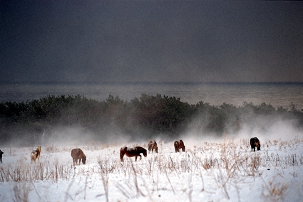 また、冬の風景で私が心打たれたもののひとつに、下北半島の寒立馬があるんですが、生き物がそこに存在することによって、冬の厳しさというものが余計に際立ってくるんです。厳しい環境の中で生きている姿。「長い冬の間、ここにずっと佇んでいるのか」と思うといとおしくなるし、これがこの地に生きるものの真の姿かという感動を覚えますね。