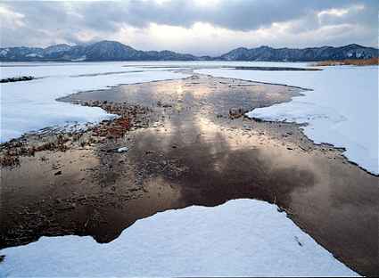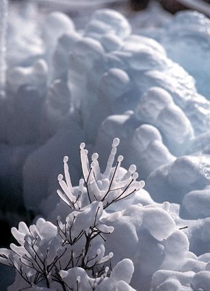 冬の風景では雪や氷も女性的で美しいモチーフですね。雪はあらゆるものをきれいに見せてくれるんです。写ってほしくないものは真っ白に覆ってくれるし、積もればその柔らかな曲線が、造形的な美しさを醸し出してくれるんですよ。そして雪は冬の冷たさや厳しさを表現するだけでなく、状況のとらえ方によっては、温かみや希望を感じさせることだってできるんですよ。雪がいっぱい積もっていても、その中から草の芽がたくましく顔を出していたら、そこに希望があふれている。同じ雪にも様々な要素が含まれており、いろいろな感情を表現することができるんです。