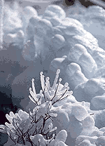 足下にだって写真の素材は転がっている。ツツジの枯れ木に氷の華が咲いていた。その華を活かす工夫がフレーミングだ。撮影の過程の中で一番楽しいのが、この作業である。