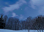 早朝、旅館を出ると残月が南の空に輝いていた。雲が足早に流れて、月が隠れる瞬間があった。タイミングを見計らって何枚かシャッターを押した。