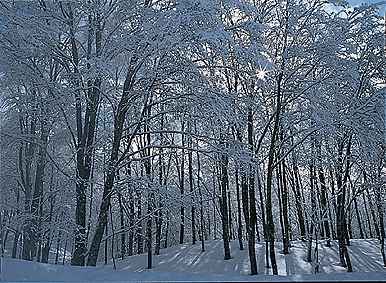 ブナの林にどっぷり浸かって撮影していたら、突然光が射し込んできた。心地よい眩しさを出すため、ワイドレンズで太陽を入れて撮った。