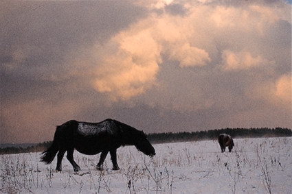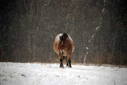 寒立馬と呼ばれている尻屋崎の馬は、厳冬期にも自然の中で耐えて生きている。降りしきる雪の中に佇んだその姿を見るだけで、感動を覚える。