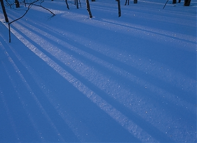 蔦沼の撮影をしている時、ふと振り向くと、林の中を光が走っていた。急いでカメラを移動させ、走っている美しい光だけをフレーミングした。
