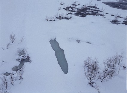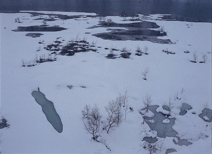 私の撮影の仕方は、面白いと感じたモチーフを攻撃的に分割して撮ることが多い。湖が凍って雪をかぶっていた。その状況をワイドレンズでとらえた。