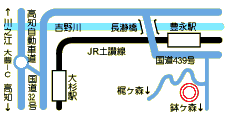 (5)高知自動車道大豊IC→32号線左折→長瀞橋から439号線→梶ケ森方面→八畝