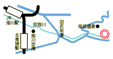 (5)JR函館本線旭川駅→天人峡温泉行きバス→徒歩約600m
