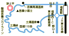 (5)JR福島駅→バス1時間20分→浄土平下車→土湯峠方向へ約10分
