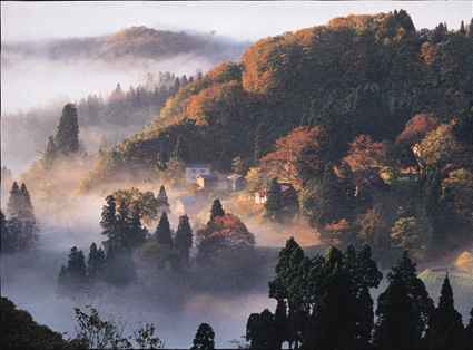 (4)霧の多い日が狙い目。霧のバランスをみながらの撮影になります。近辺には棚田も多く、紅葉以外の撮影場所も豊富