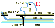 (5)JR上越線越後川口駅下車→小千谷・川口・大和線に沿って徒歩約70分