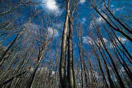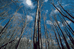 晩秋の八甲田山のブナ林。木の葉は既に散ってしまっているが、すきっと天空目指して伸びている木々に、秋の風情が感じられる。紅葉が終わっても被写体は豊富である。(青森県八甲田山山腹)